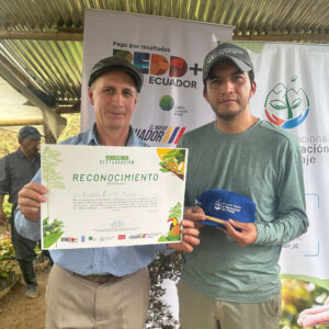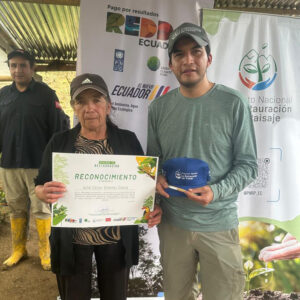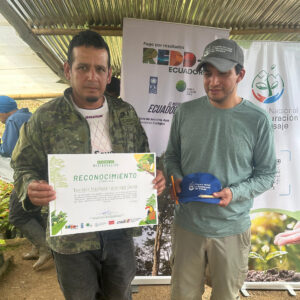 Durante la jornada, también se efectuó la entrega de reconocimientos a las y los socios que participan del proyecto por parte de Gustavo Aldás, Gerente del Proyecto Nacional de Restauración del Paisaje, como un incentivo a su participación, y aporte a la conservación y recuperación de los ecosistemas locales. Esta actividad permitió además, entablar un diálogo con la comunidad, quienes compartieron sus experiencias y expectativas en torno al proceso de restauración.